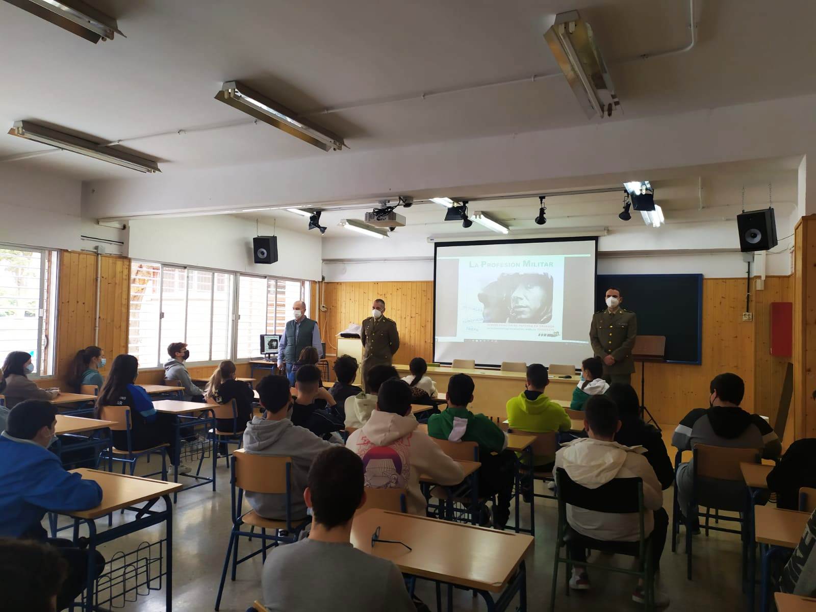 En ella se informado a los alumnos de 4º de la ESO y 2º Bachiller sobre las misiones y cometidos que desempeñan las Fuerzas Armadas, así como las formas de acceso a los Cuerpos y Escalas que las componen