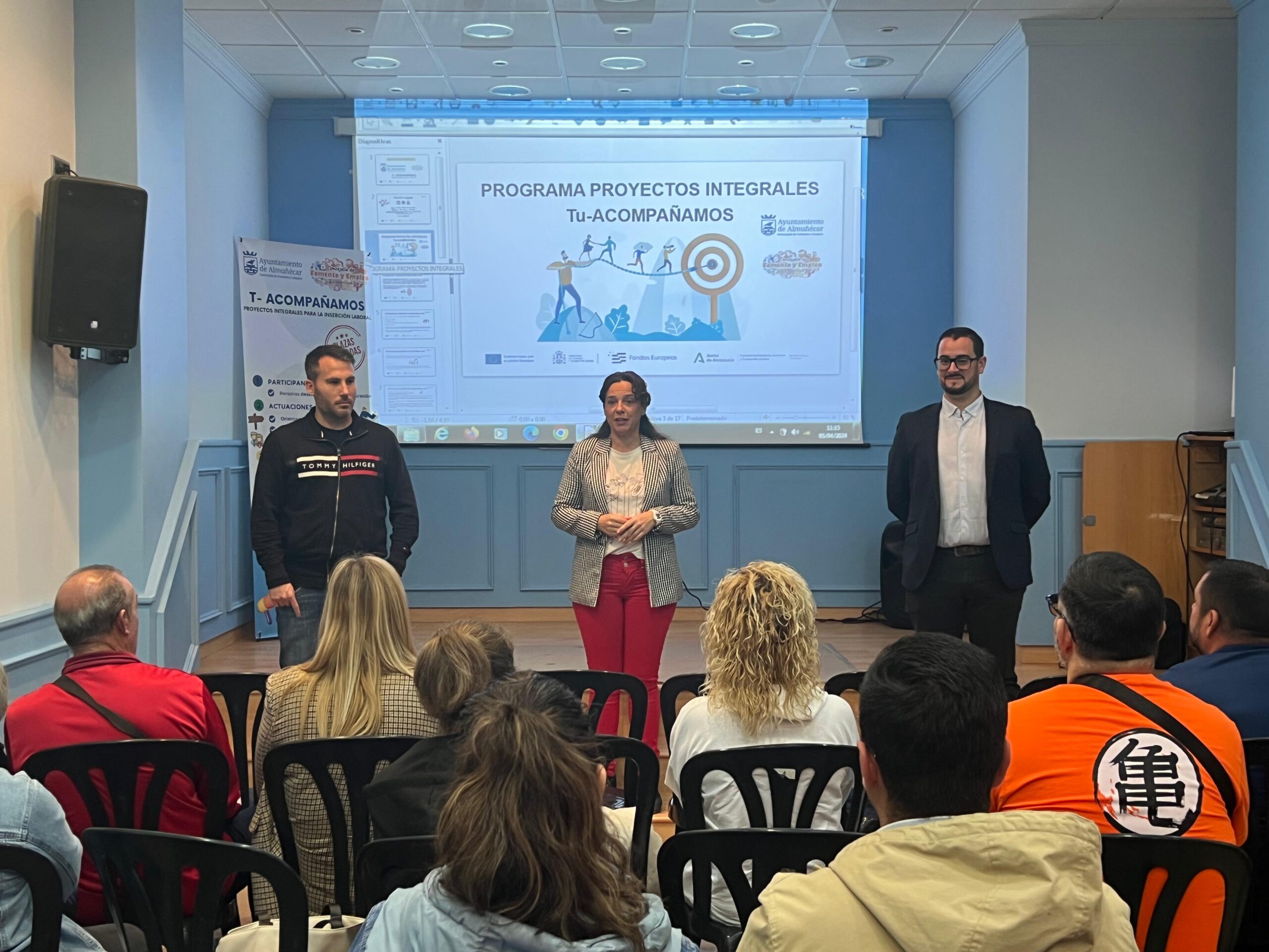 La concejala de Fomento y Empleo del Ayuntamiento de Almuñécar, Beatriz González Orce, acompañada por el edil de Juventud, Francisco Rodríguez, y el técnico de orientación laboral, Rafael Cuenca, ha presentado el programa de formación de proyectos integrales ‘T-Acompañamos’ dirigido a 15 desempleados de larga duración de Almuñécar, que pretende, a través de la orientación, la formación y el acompañamiento, volver a insertar a estas personas en el mundo laboral, ayudándoles a encontrar un empleo.