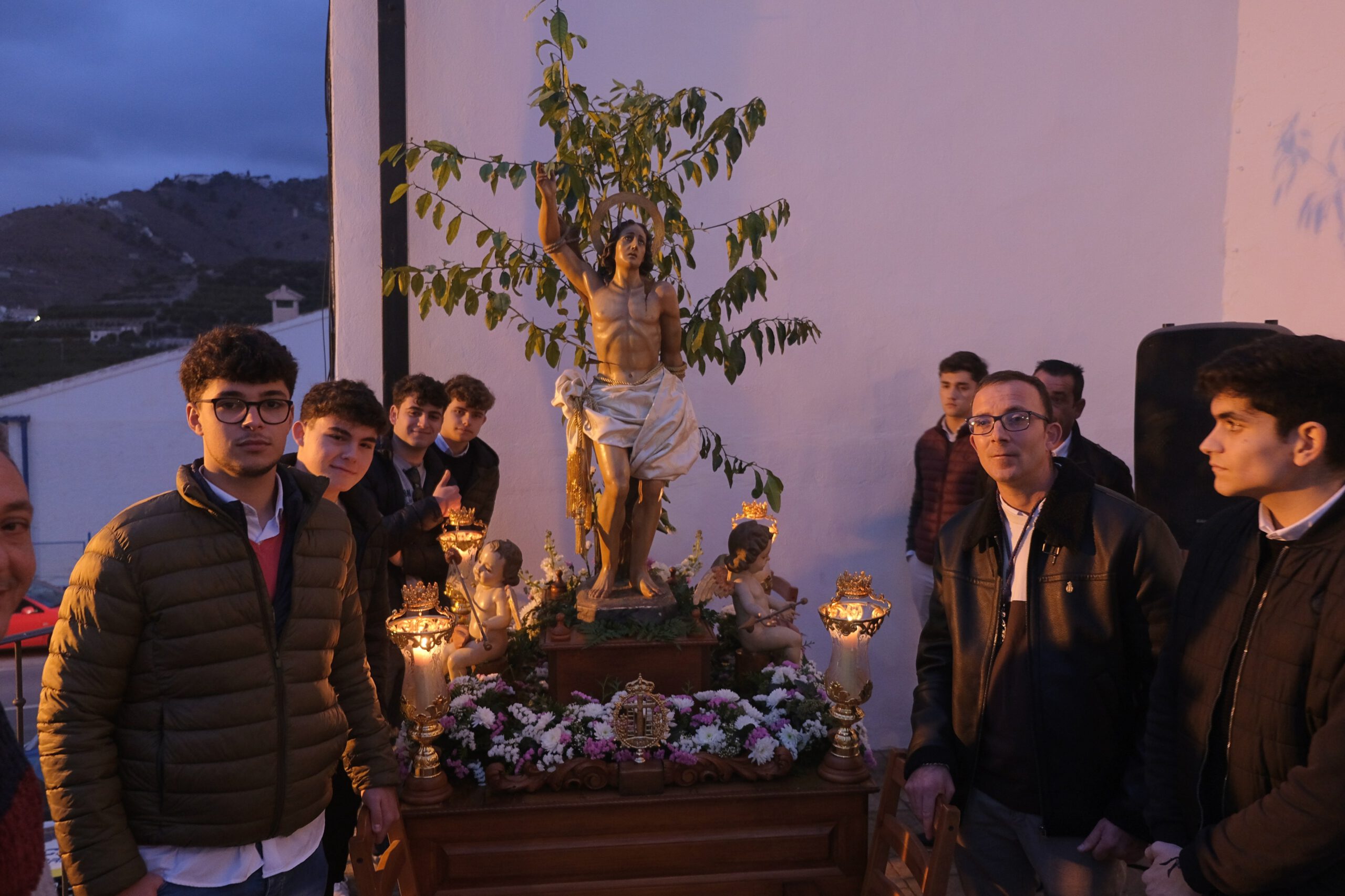 Vecinos y devotos acompañan a San Sebastián Mártir en la Procesión de Gloria por su barrio