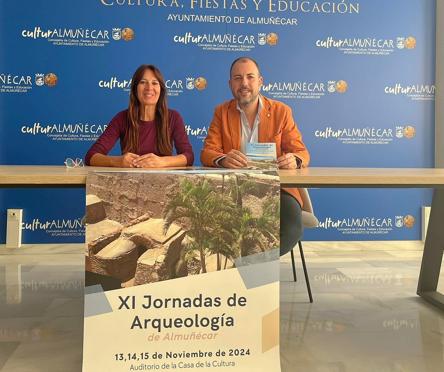 El concejal de Cultura del Ayuntamiento de Almuñécar, Alberto García Gilabert, junto a la arqueóloga municipal, Elena Navas, ha presentado las XI Jornadas de Arqueología de Almuñécar que en esta edición se centrarán en las murallas defensivas de la ciudad y que se celebran del 13 al 15 de noviembre en la Casa de la Cultura sexitana.